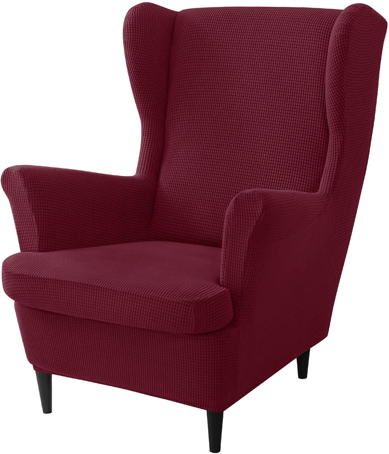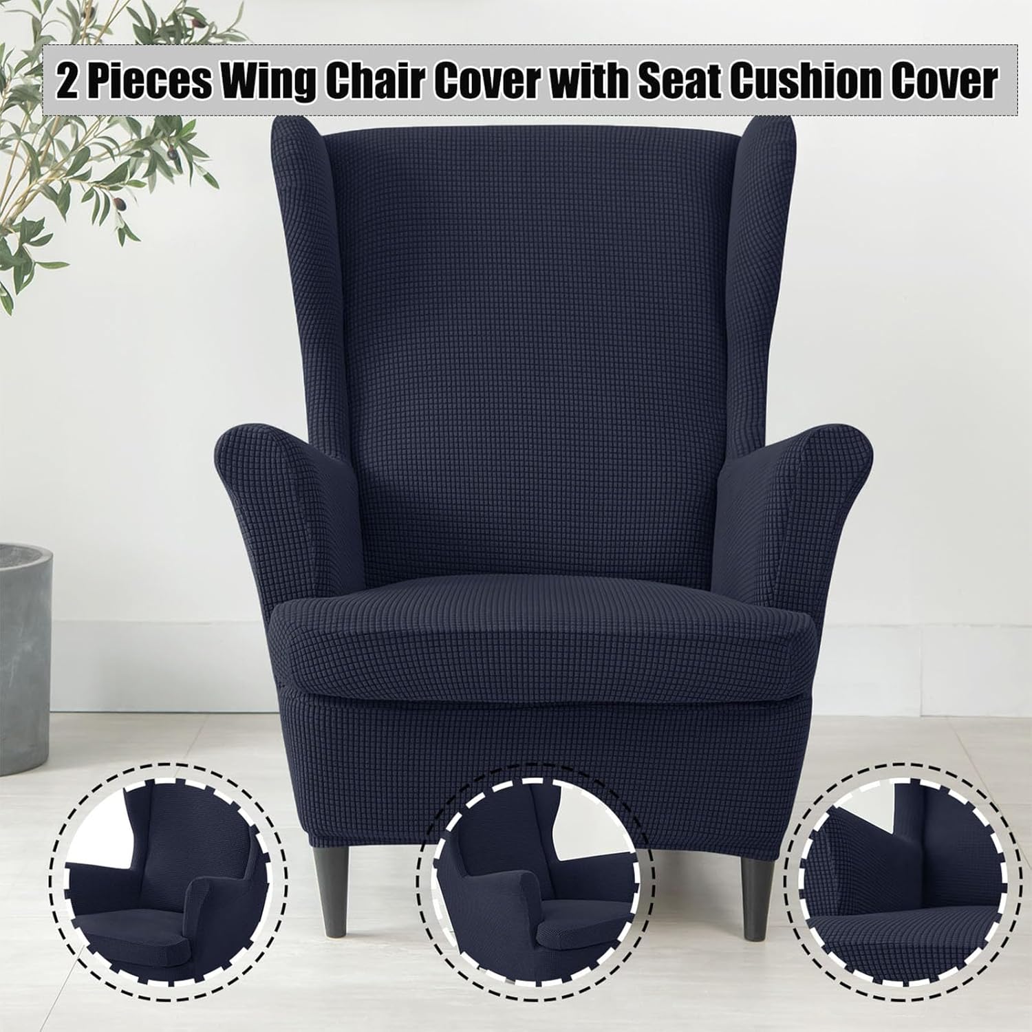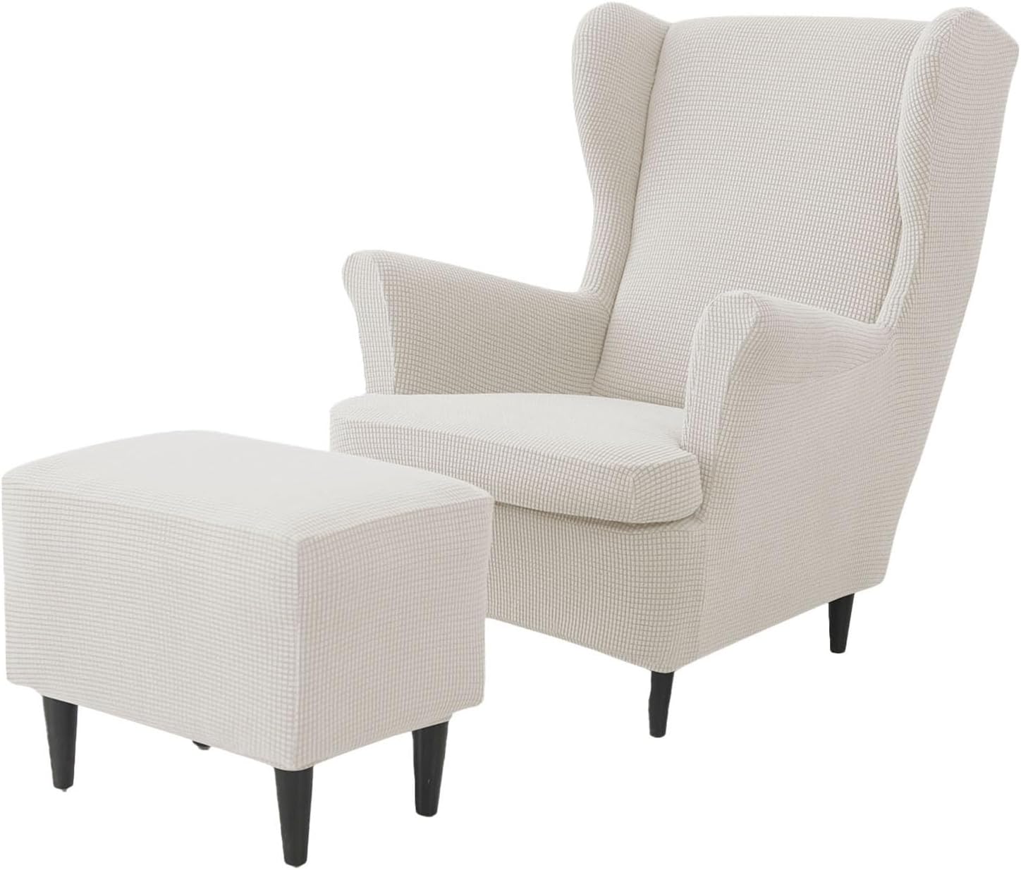 Features: 1. Easy to put on and off, the elastic is free-floating inside the hem of the cover to allow you to adjust fullness around the perimeter of your furniture. There is elastic at the base of the furniture cover that allows the cover to stay snug to the base of your furniture. 2. Machine washable, relieve housework, save bill cost on cleaning. Great for family with kids and pets. 3. Highly stretchy and craftsmanship make these ottoman covers perfect fit for most sizes, practical and aesthetic for your room décor. SIZE: Wingback Chair Slipcovers Size: Backrest back length: 78-85 cm/30.7-33.5in Backrest height: 95-100 cm/37.4-39.8 in Chair width: 84-90 cm/33.1-35.4 in Stool Slipcovers Size: Length: 55-65cm/21.6-25.6in Width: 35-45cm/13.7-17.7in Height: 20-30cm/7.9-11.8in PACKING LIST: 1 x Wing Chair Cover with Cushion Cover 1×Stool Cover (Note: We only sell Ottoman Cover, footrest not included!!!) NOTICE: Please measure your wing chair before ordering to ensure the best fit. Please allow 0.5-1 inch error due to manual measurement and stretch Fabric.