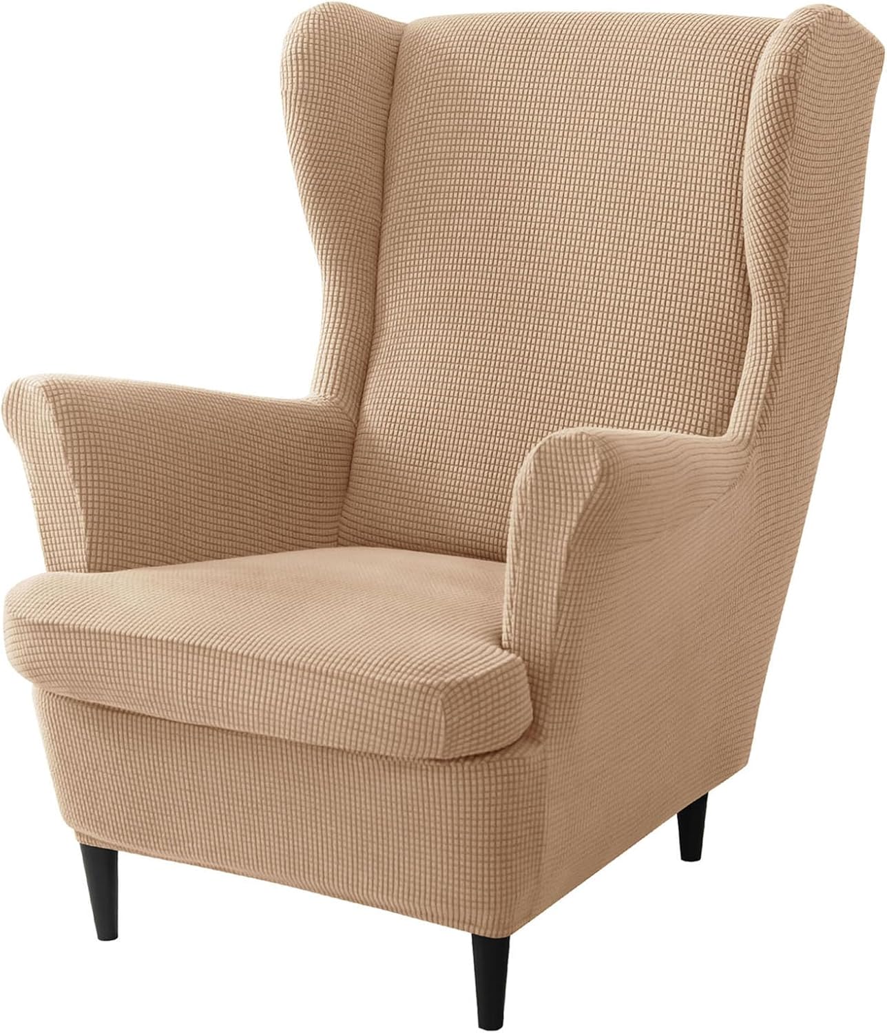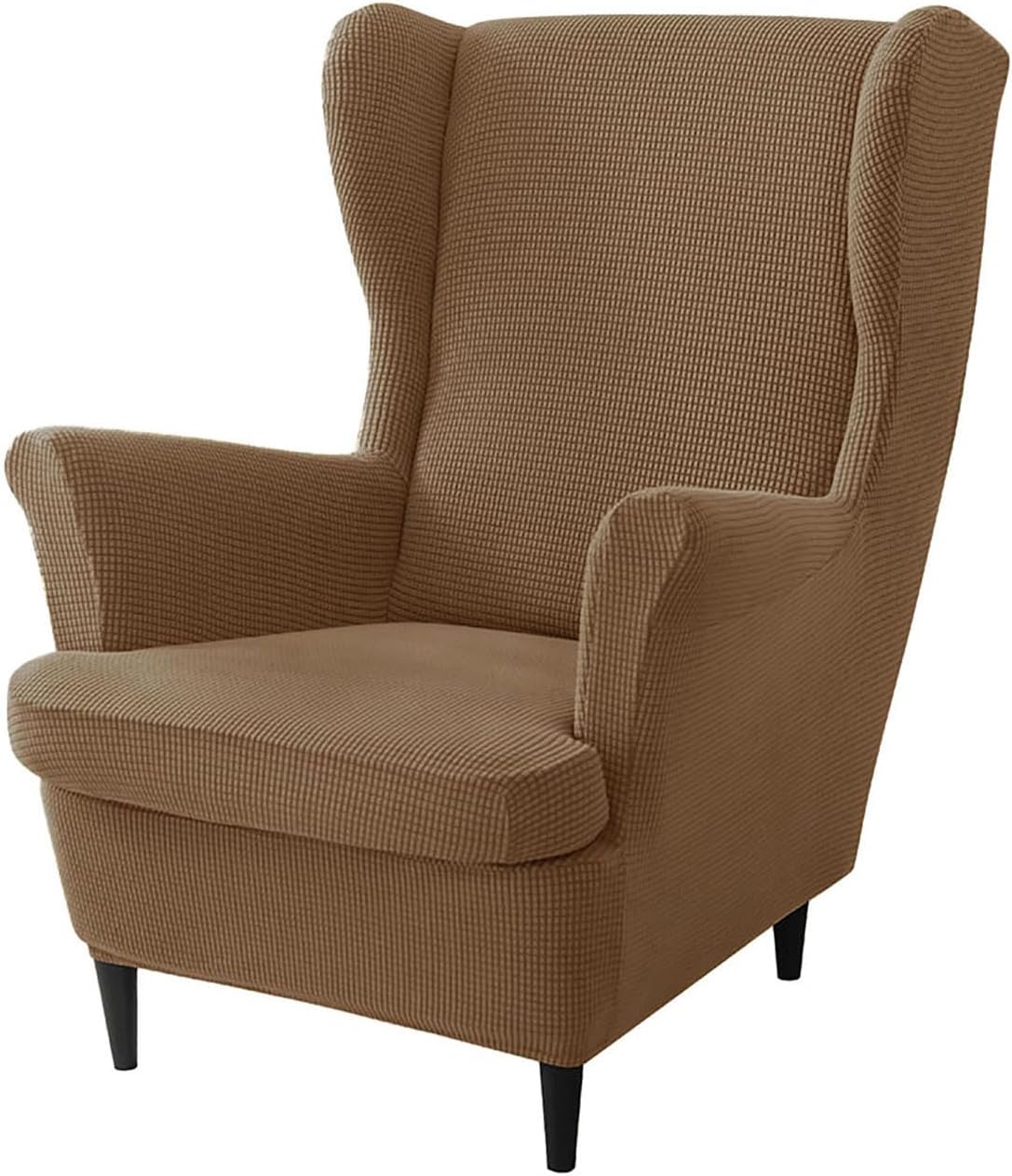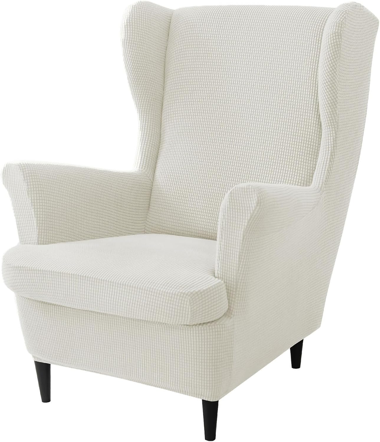 Features: 1. Easy to put on and off, the elastic is free-floating inside the hem of the cover to allow you to adjust fullness around the perimeter of your furniture. There is elastic at the base of the furniture cover that allows the cover to stay snug to the base of your furniture. 2. Machine washable, relieve housework, save bill cost on cleaning. Great for family with kids and pets. 3. Highly stretchy and craftsmanship make these ottoman covers perfect fit for most sizes, practical and aesthetic for your room décor. SIZE: Wingback Chair Slipcovers Size: Backrest back length: 78-85 cm/30.7-33.5in Backrest height: 95-100 cm/37.4-39.8 in Chair width: 84-90 cm/33.1-35.4 in Stool Slipcovers Size: Length: 55-65cm/21.6-25.6in Width: 35-45cm/13.7-17.7in Height: 20-30cm/7.9-11.8in PACKING LIST: 1 x Wing Chair Cover with Cushion Cover 1×Stool Cover (Note: We only sell Ottoman Cover, footrest not included!!!) NOTICE: Please measure your wing chair before ordering to ensure the best fit. Please allow 0.5-1 inch error due to manual measurement and stretch Fabric.